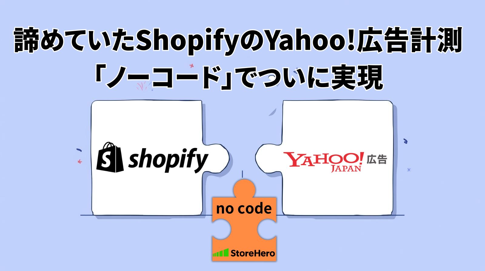 ShopifyにおけるYahoo!広告のコンバージョン計測をプログラミング知識不要の「ノーコード」で可能にする新機能を、グロースプラットフォーム「StoreHero」に実装したことをお知らせします。