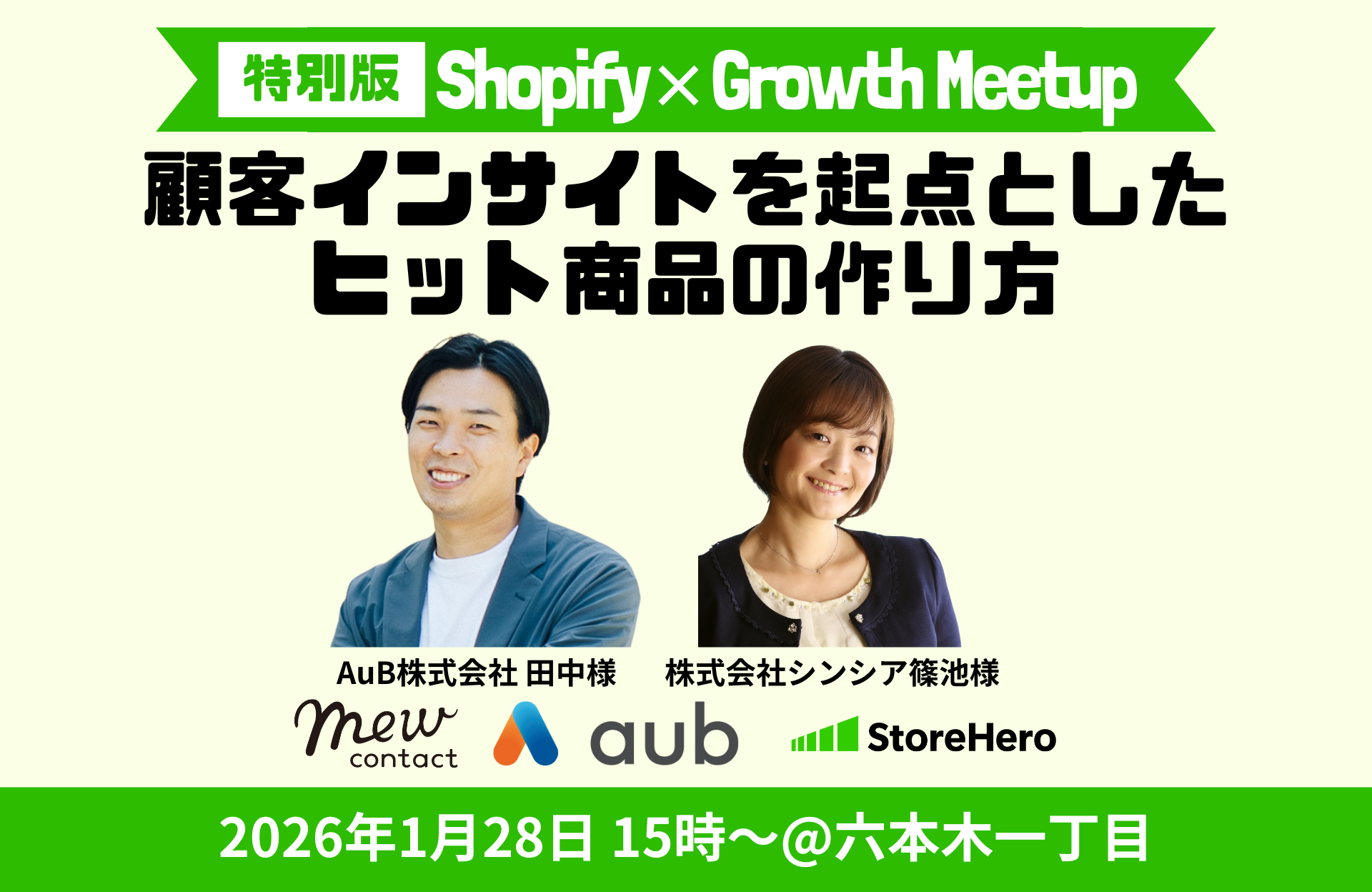 今回のGrowthMeetupは、特別拡大版として、Shopifyを活用して事業を拡大させている注目の2社をお招きし、「顧客インサイトを起点としたヒット商品の作り方」を深掘りします。