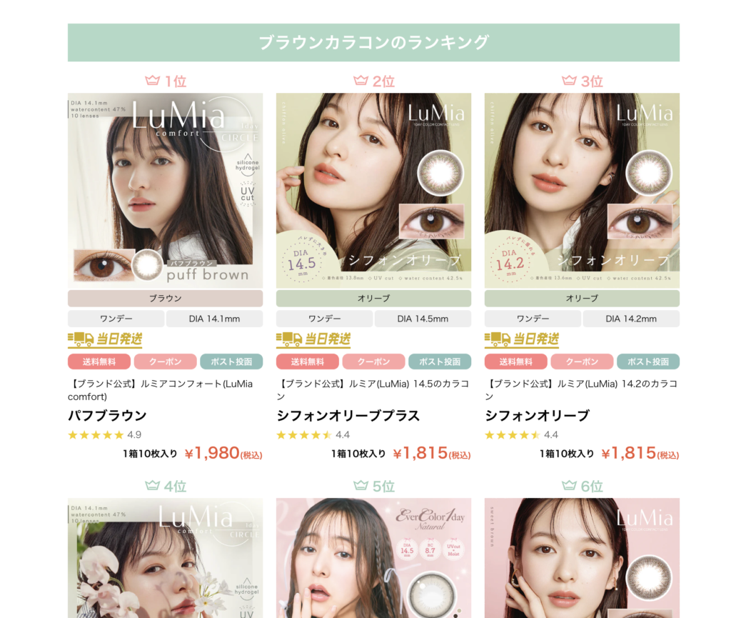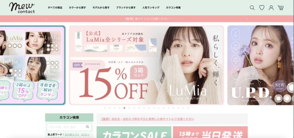 StoreHeroの支援先で事例インタビュー記事でも紹介したシンシア様が運営するMew contactも様々な種類と度数のカラコンを提供されており大量SKUモデルの代表例です(参考:Mew contactインタビュー)。