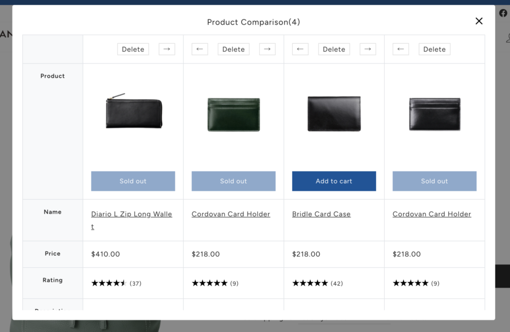 また比較表は,商品数が多い場合は,顧客に検討中の商品同士を比較できる機能を実装することも有効です。アプリにもありますが,StoreHeroの場合,セクションで実装しています。