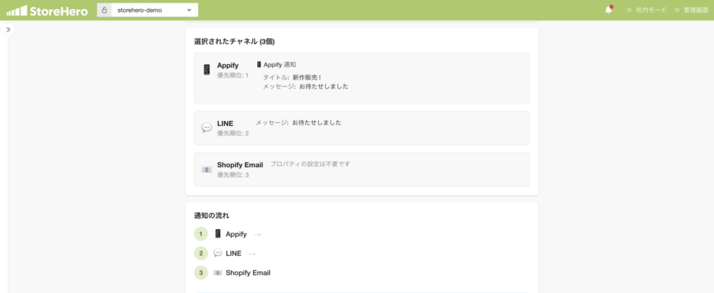 この通知オペレーションは、新作販売のたびに発生するため、抜け漏れなく実行できる仕組みを構築することが不可欠です。StoreHeroでは、複数のチャネルへの通知を一つの画面から一斉に行えるワークフローを構築し、通知漏れによる機会損失を防いでいます。